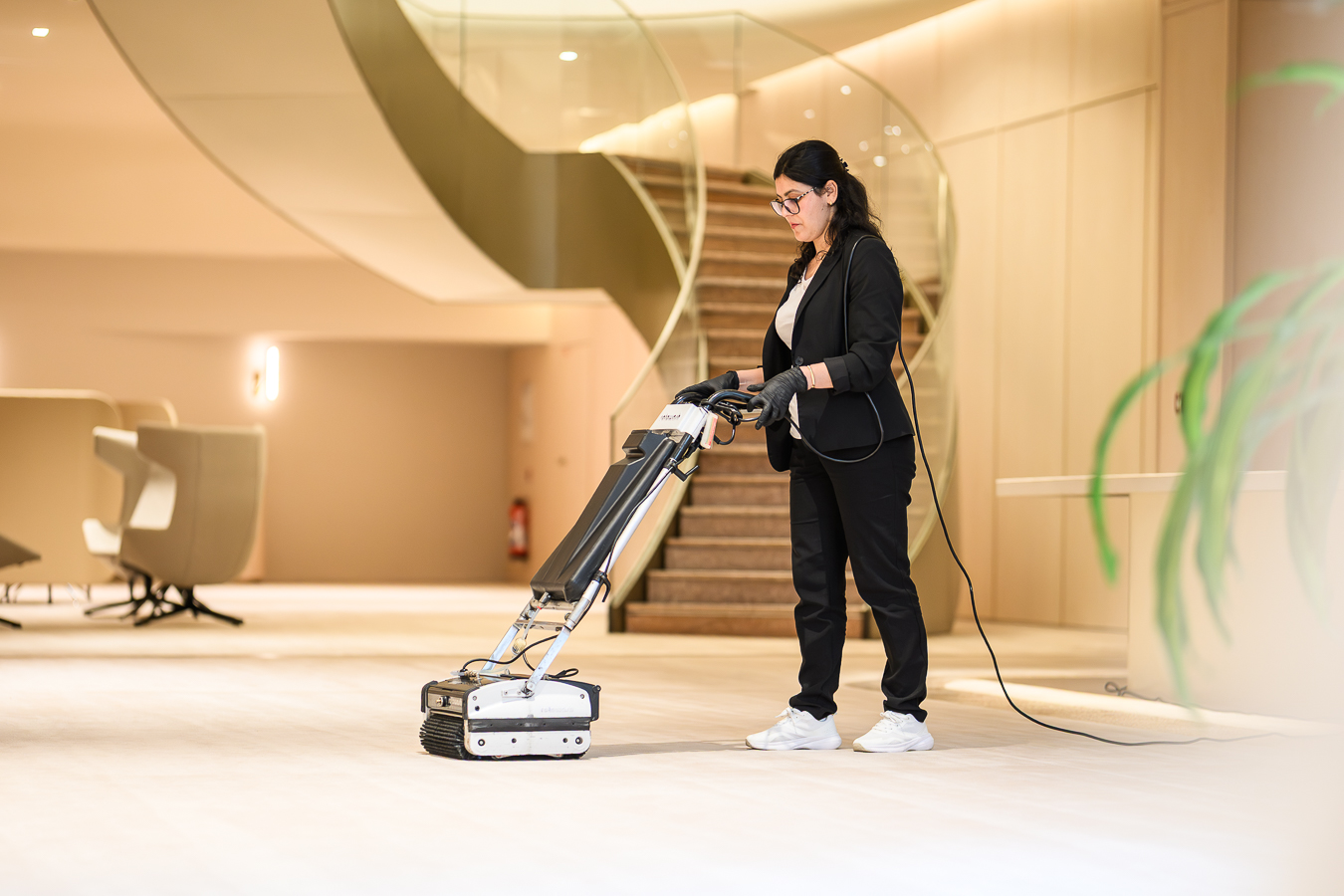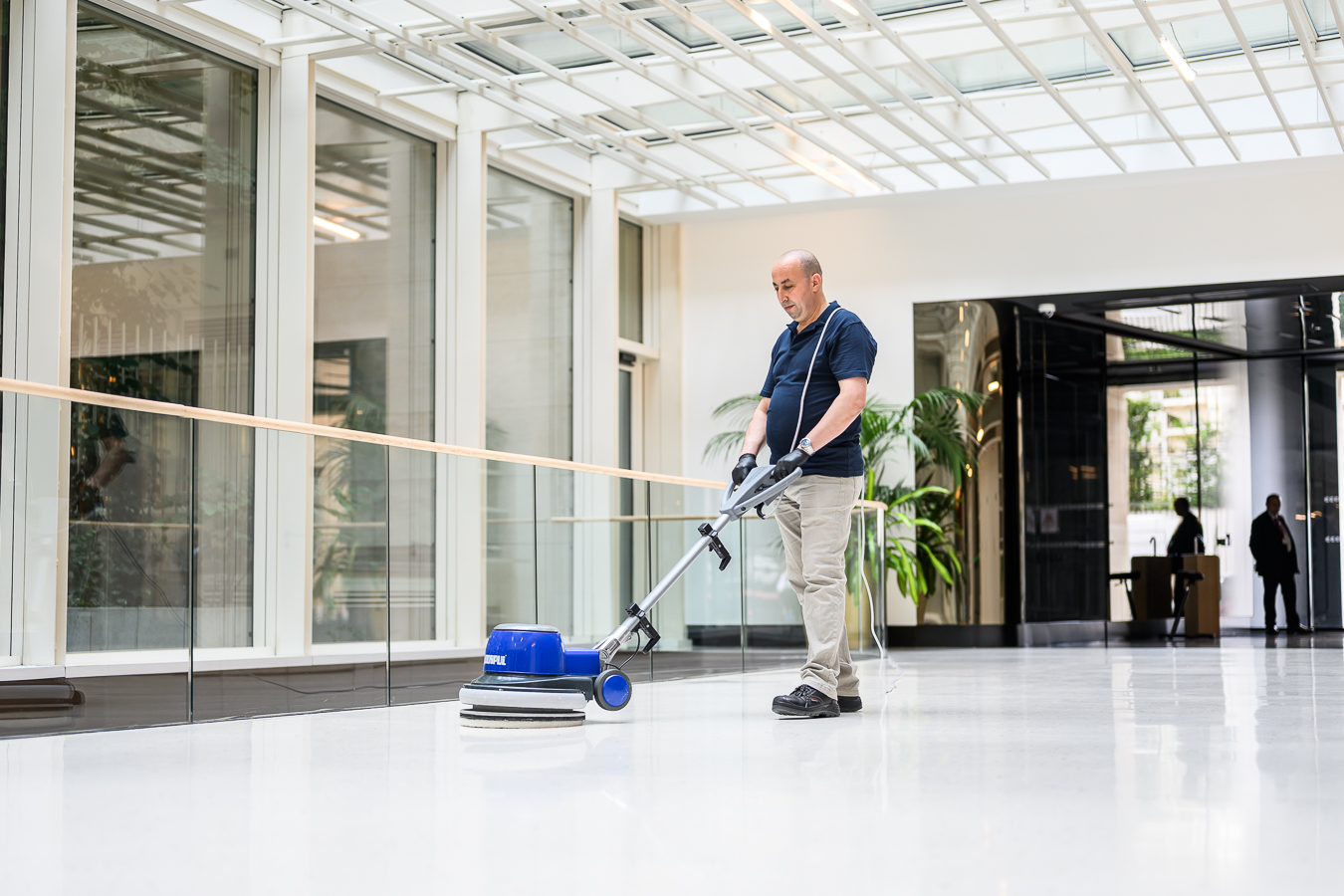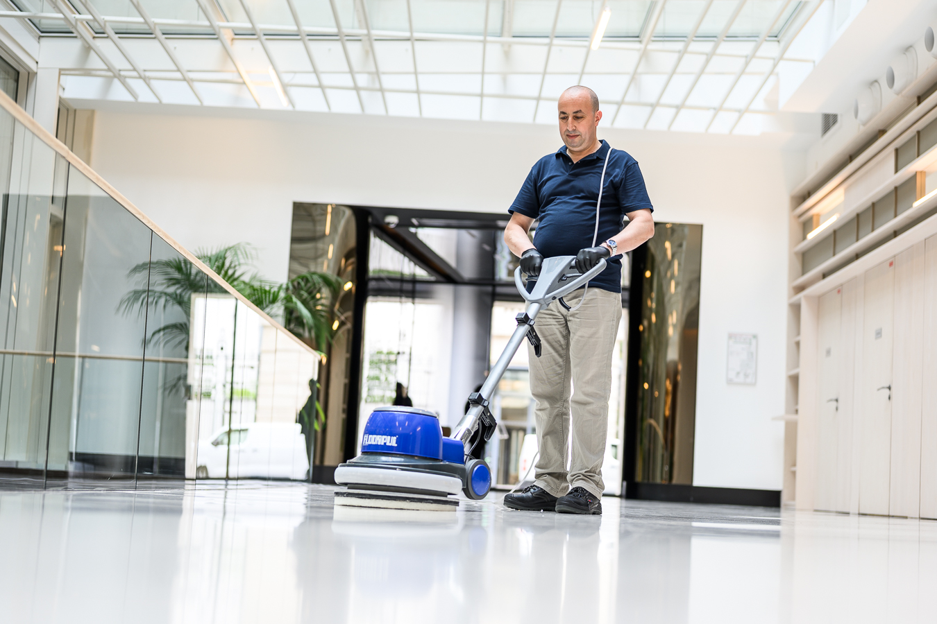- des équipements adaptés : monobrosses basse et haute vitesse, aspirateurs à eau, autolaveuses, nettoyeurs haute pression, injecteur-extracteurs ; etc.,